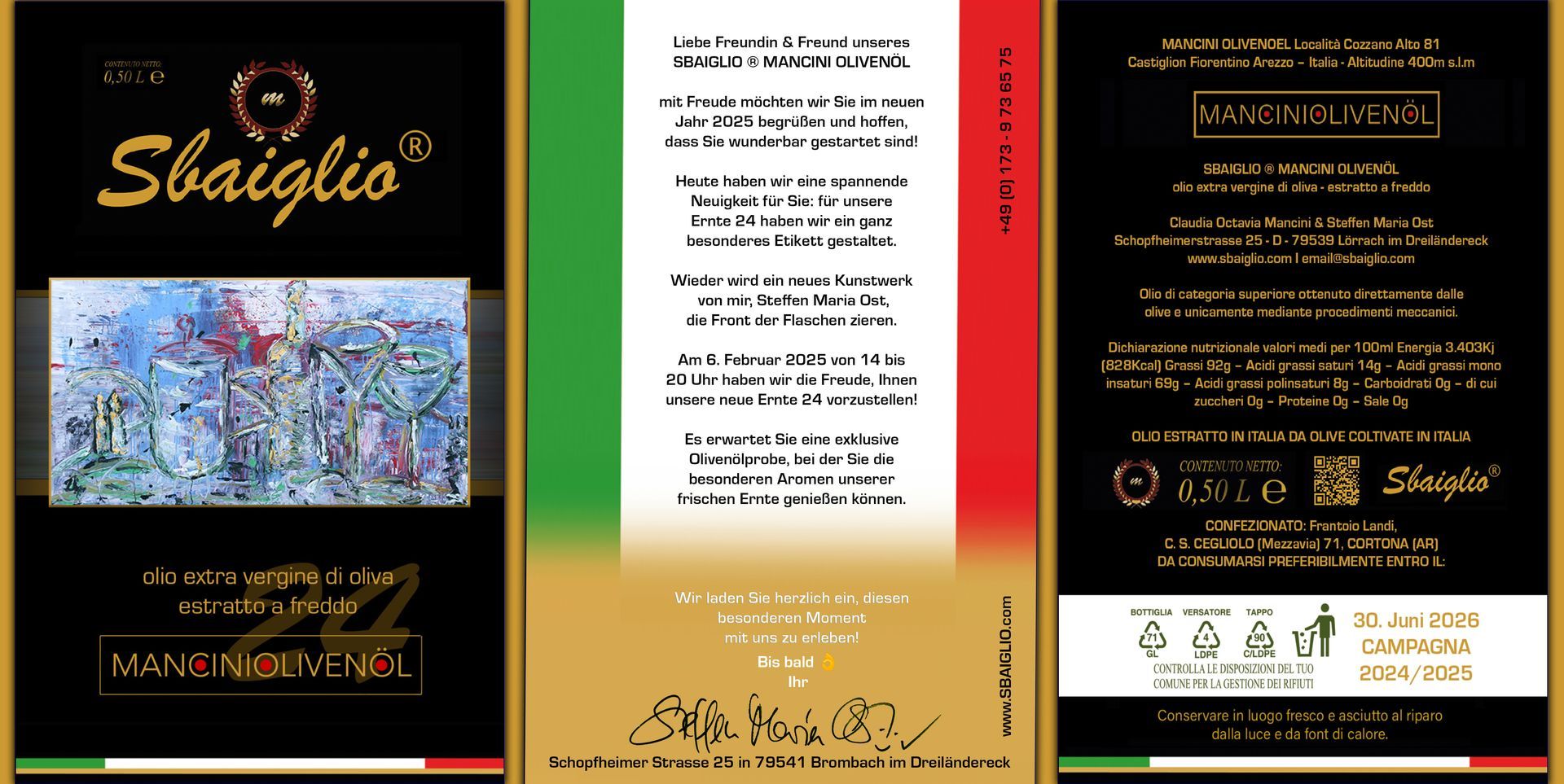 Am 12.12.2024 eröffneten wir mit unserem Richtfest - am 06. Februar 2025 sind wir wieder von unseren Olivenbäumen & meinem SOMMERATELIER aus der Toskana zurück & eröffnen für Sie mit unserer eigenen Olivenölprobe von 14 - bis 20 Uhr die neuen Räume wozu Sie herzlich willkommen sind.