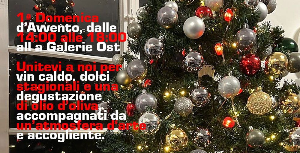 Con la nostra mostra conclusiva alla Galleria Cael di Milano, che inaugurerà il 5 dicembre 2025 e sarà visitabile fino al 20 dicembre, accompagniamo il cammino verso il periodo natalizio – un momento speciale di raccoglimento e di gioia alla fine dell’anno. La Galerie Ost rimarrà aperta per voi su appuntamento personale fino al 29 novembre. La prima domenica d’Avvento, il 30 novembre 2025, desideriamo concludere l’anno insieme a voi con vin brulé e dolci, oltre a una piccola degustazione di olio d’oliva. Non vediamo l’ora di accogliervi!